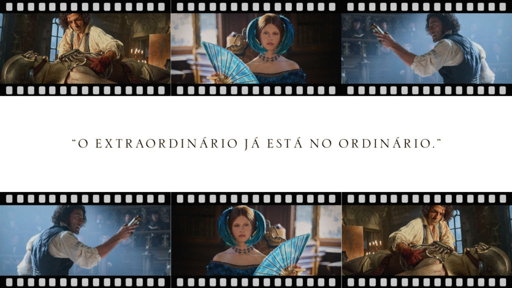 Del Toro, com seu olhar característico, ilumina esses momentos com delicadeza, quase como pequenas epifanias visuais, ressaltadas até mesmo no figurino da jovem, que, com cores vibrantes, se destaca entre os cenários mais sóbrios da obra. Em Elizabeth, vemos aquilo que Calvino chamaria de “o teatro da glória de Deus”: a beleza que não se revela no espetacular, mas na vida comum, naquilo que frequentemente passa despercebido, e que, ainda assim, aponta para o Criador.
